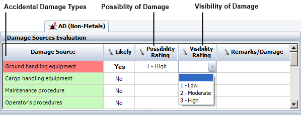 When you select Possibility of Damage, the right panel displays the rating scale that will be used to rate the possibility of damage due to each of the specified types.