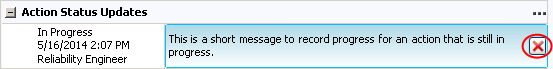The Action Status Updates area displays any notes that have been added to report progress toward the completion of the action.