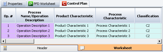 PFD Worksheet allows you to create a new control plan based on an existing PFD worksheet.