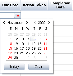 To edit a date field (e.g., target completion date, etc.), click the cell to display a calendar.