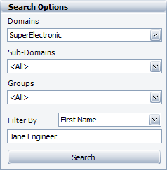 Use the Search Options to find the user(s) you want to create accounts for. When you enter the criteria and click Search, the utility will return only records that a) have the minimum information required to create a Synthesis user account (i.e., username, first name, last name and e-mail address) and b) do not already have a user account in the current database.