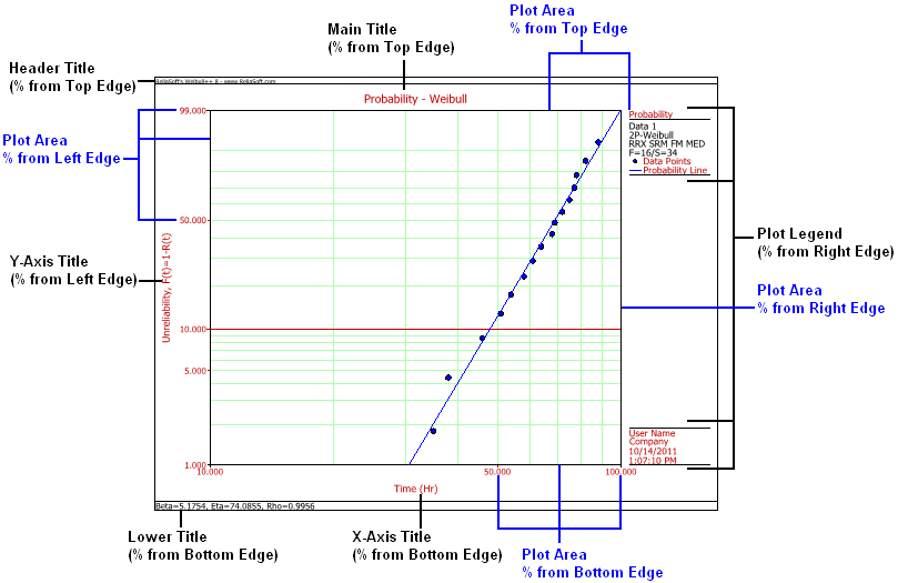 For your reference, the following picture shows which plot elements are affected by each of the offset settings. (Note that the plot is generated from Weibull++, but the settings are the same for all Synthesis applications.)