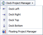 Choose View > Project Manager > Dock Project Manager and then choose the desired option.
