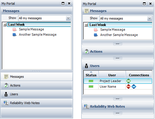 As an example, the first picture shows the My Portal panel when it is not tiled. The second picture shows the tiled panel, with two of the four pages expanded to be visible at the same time.