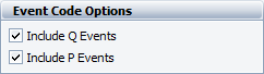 The Event Code Options area on the Analysis page of the control panel allows you to choose whether performance (P) and quality (Q) failures will be included in the analysis. By default, both check boxes will be selected.