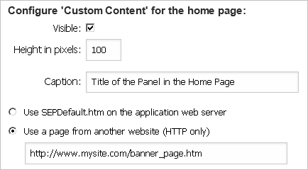 The SEPDefault.htm file is installed in the CustomContent folder under the root directory for the SEP website. You can choose to edit this file on the web server or replace it with a URL to another web page.