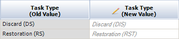 For the Discard and Restoration task types, there is no difference between Version 3 and the Synthesis version. The text in the Task Type (New Value) column will be displayed in italics to indicate that this property cannot be changed via the Tasks Conversion window.