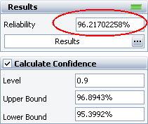 The result on the control panel indicates that the reliability of the steel rods against fractures is estimated to be 96.2171%, as shown next.