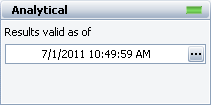 The Analytical area displays the status and results of the analysis. If the light is green, as shown below, then the diagram has been analyzed. If the light is red, then the diagram has not been analyzed. An analyzed diagram will remain in the analyzed state unless a change is made to the structure of the diagram (e.g., a block is added or changed, a connector is removed, etc.).
