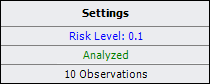 The Analysis page of the linearity and bias folio control panel includes the risk level and process standard deviation (if any) that will be used for the analysis.