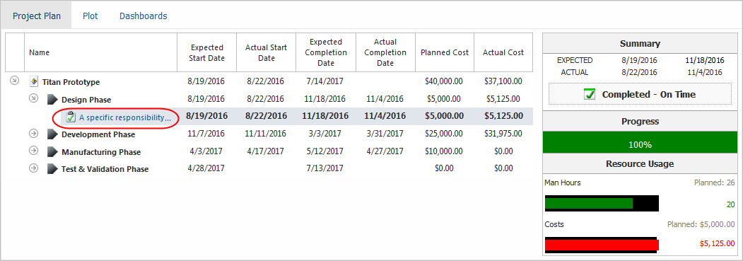 The Project Summary page provides a list of all the actions that have been assigned within the current project.