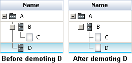 To move a selected item to the next higher or lower level, choose Home > Move Record > Promote or Demote. An item can be demoted only if there is another item on the same level and above the selected item that it can be demoted under.