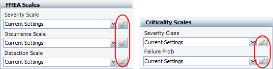 The Severity, Occurrence and Detection pages in the Profiles/Library Manager show all of the predefined rating scales in the active library.