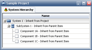 For a quick way to reset all of the item permissions to the defaults, you can open the Item Permissions window for SubSystem 1, set to Inherit from parent item and select the Apply to all dependents check box. The resulting system hierarchy is shown next.