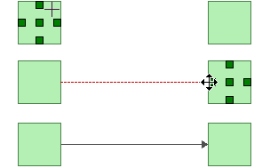 In both methods, the pointer will change to display small crosshairs. Click the source block, hold down the left mouse button and drag a line from the source block to the destination block. When the crosshairs are located above the destination block, release the mouse button to create a connector.