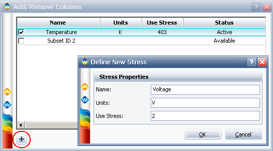 In the window that appears, click the Add Column icon in the bottom-left corner. The Define New Stress window will appear.