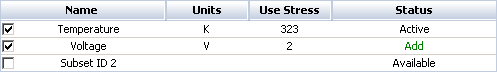 The new stress will appear in the window with a selected check box and "Add" displayed in the Status column.