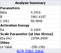 The Ea (activation energy) value represents the magnitude of the effect that the applied stress will have on the product. A large activation energy indicates that the applied stress has a large effect on the life of the product.