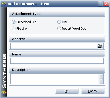 Specify what you are attaching by selecting either Embedded File, File Link or URL in the Attachment Type area.