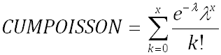 Cumulative is a logical value that determines the form of the probability distribution returned. If Cumulative is TRUE, POISSON returns the cumulative Poisson probability that the number of random events occurring will be between 0 and x inclusive; if FALSE, it returns the Poisson probability mass function that the number of events occurring will be exactly x.