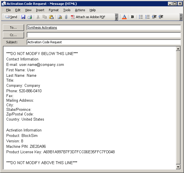 When this is received by our server, the server will automatically reply with a block of text that you need to copy and paste in the Activation Code area of the wizard (i.e., below your Product License Key).