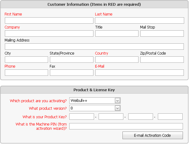 * Specifically, the information transmitted to the ReliaSoft License Server is your ReliaSoft ID (e-mail address) and Product License Key. If this is your first time registering, your name and the basic contact information will also be transmitted. The information is encrypted by our software first and then transmitted using SSL to the secure server. We do not sell or provide your information to any third parties (see Privacy Statement). The information sent back is simply a code that tells the software that it is now authorized to run on that computer.
