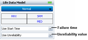 The Life Data Model area contains the settings for creating a parametric model that is based on the data set obtained from the non-parametric analysis. These settings have no effect on the non-parametric analysis. The options in this area are identical to the ones on the control panel of a Weibull++ standard folio, except for the two drop-down lists shown next: