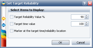 Target Reliability opens the Set Target Reliability window, as shown below. This window allows you to specify whether and how the target reliability will be shown on the plot.