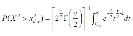 The Chi-Squared Probability returns the chi-squared value. The required inputs are the area to the right of the critical value, d, and degrees of freedom, v.