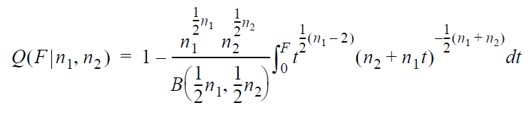 Q(F|n1, n2) is the significance level at which we can reject the hypothesis that the first sample has a smaller variance than the second.
