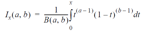 The Incomplete Beta Function option returns the value of Ix(a,b). The required inputs are the values of x, a and b.