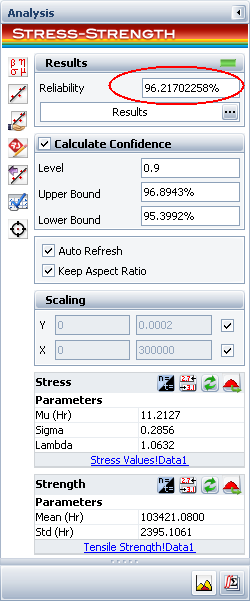 Finally, use the stress-strength folio to calculate the reliability of the steel rods. Add the folio to the project by choosing Insert > Tools > Stress-Strength.