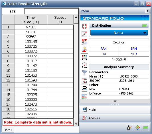 To obtain the strength distribution, use the tensile strength data from Table II. Create a new Weibull++ standard folio and rename it to "Tensile Strength."