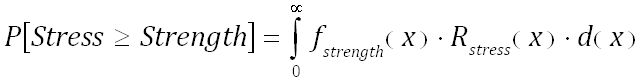 The Stress-Strength comparison tool allows you to determine the probability of failure based on the probability of stress exceeding strength. The strength data set could be actual data that represents the strength of the material (i.e., minimum applied stress to cause failure) and the stress data set could be the actual stress levels that the material will experience under use conditions.