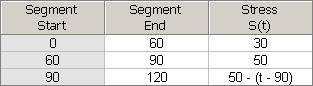 Stress S(t) is the stress value or function for the segment. If the stress level will stay constant during a segment, enter a constant stress value (e.g., 30). If the stress level will change during a segment, enter the stress as a function of time (e.g., at time = 20, the function t + 20 will return a stress value of 40). When entering a function, you must use t or T as the time variable.