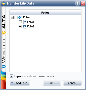 If the Replace sheets with same names option is selected, then the software will replace any data sheets that have the same name as the data to be transferred. For example, if a selected folio already has a Beta sheet and you will be transferring beta values calculated in SimuMatic, then the software will replace the data in the current Beta sheet with the new beta values. If this option not selected, then the software will always create a new sheet in the selected folio.