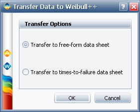 Select whether the data will be transferred to a free-form or times-to-failure data sheet in the window shown next.